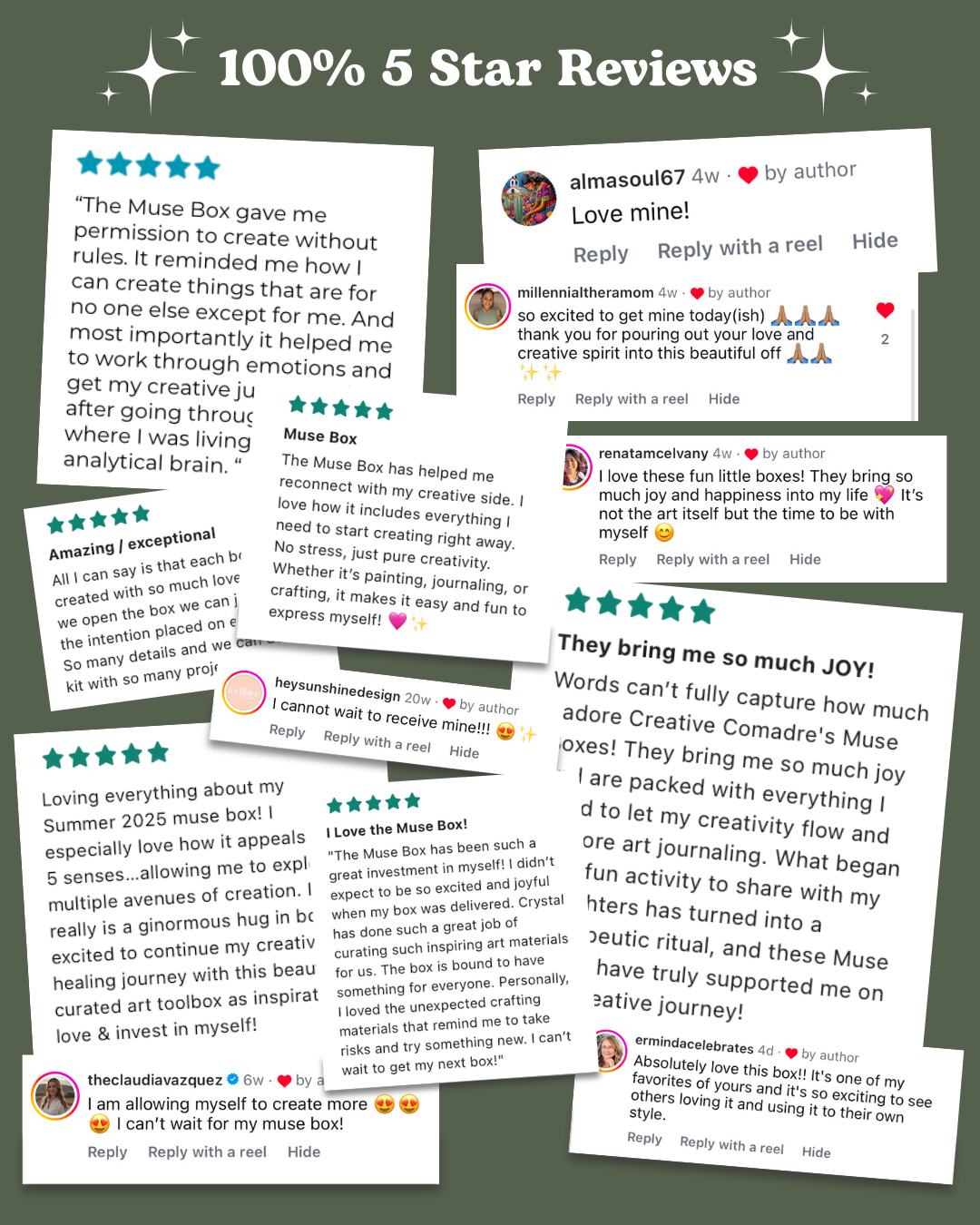 Words can’t fully capture how much I adore Creative Comadre's Muse Boxes! They bring me so much joy and are packed with everything I need to let my creativity flow and explore art journaling. What began as a fun activity to share with my daughters has turned into a therapeutic ritual, and these Muse Boxes have truly supported me on this creative journey!